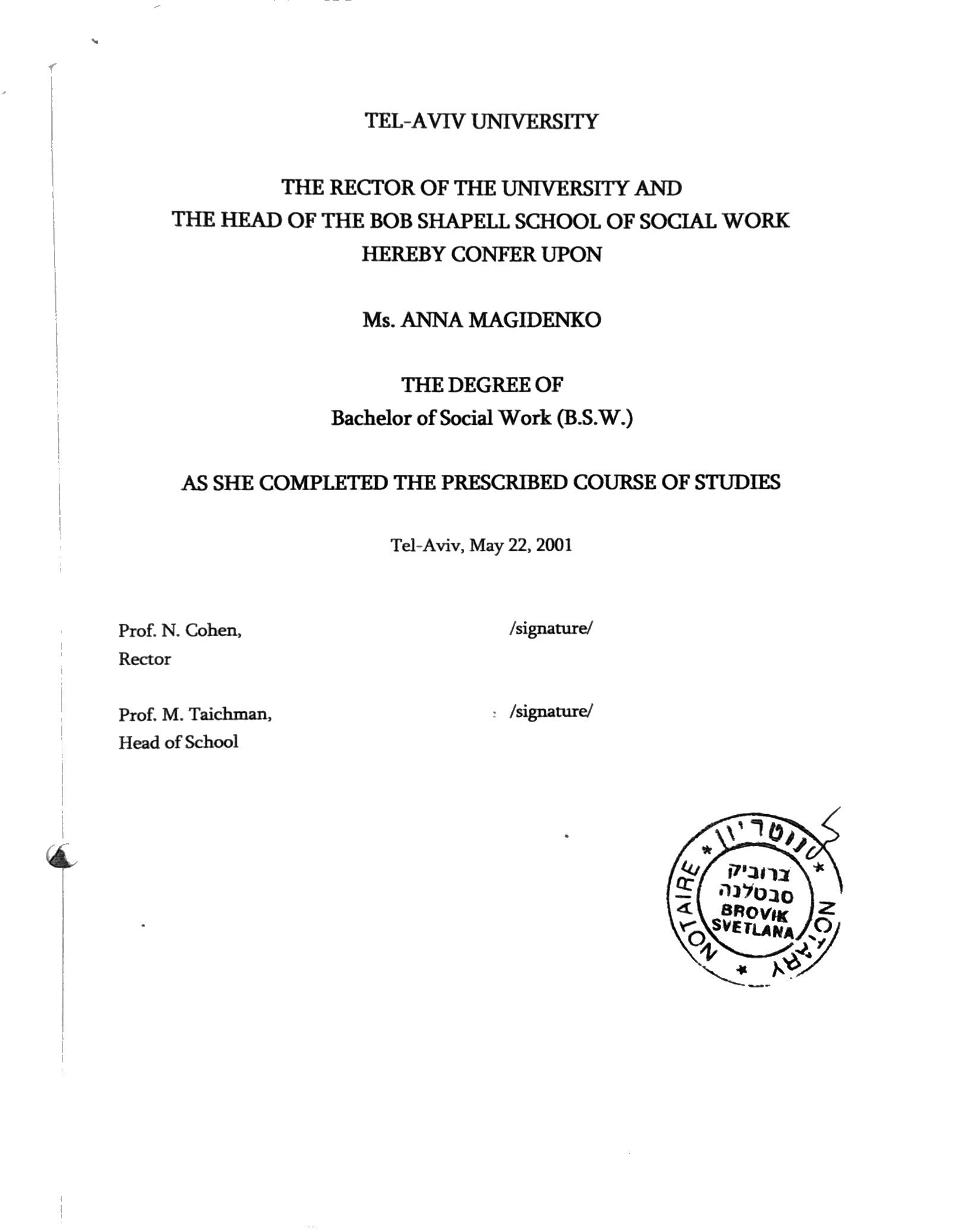 Tel Aviv University (Israel), 2000 - Over 25 years across diverse sectors: child and senior protection, disability services, mental health, education, and crisis response