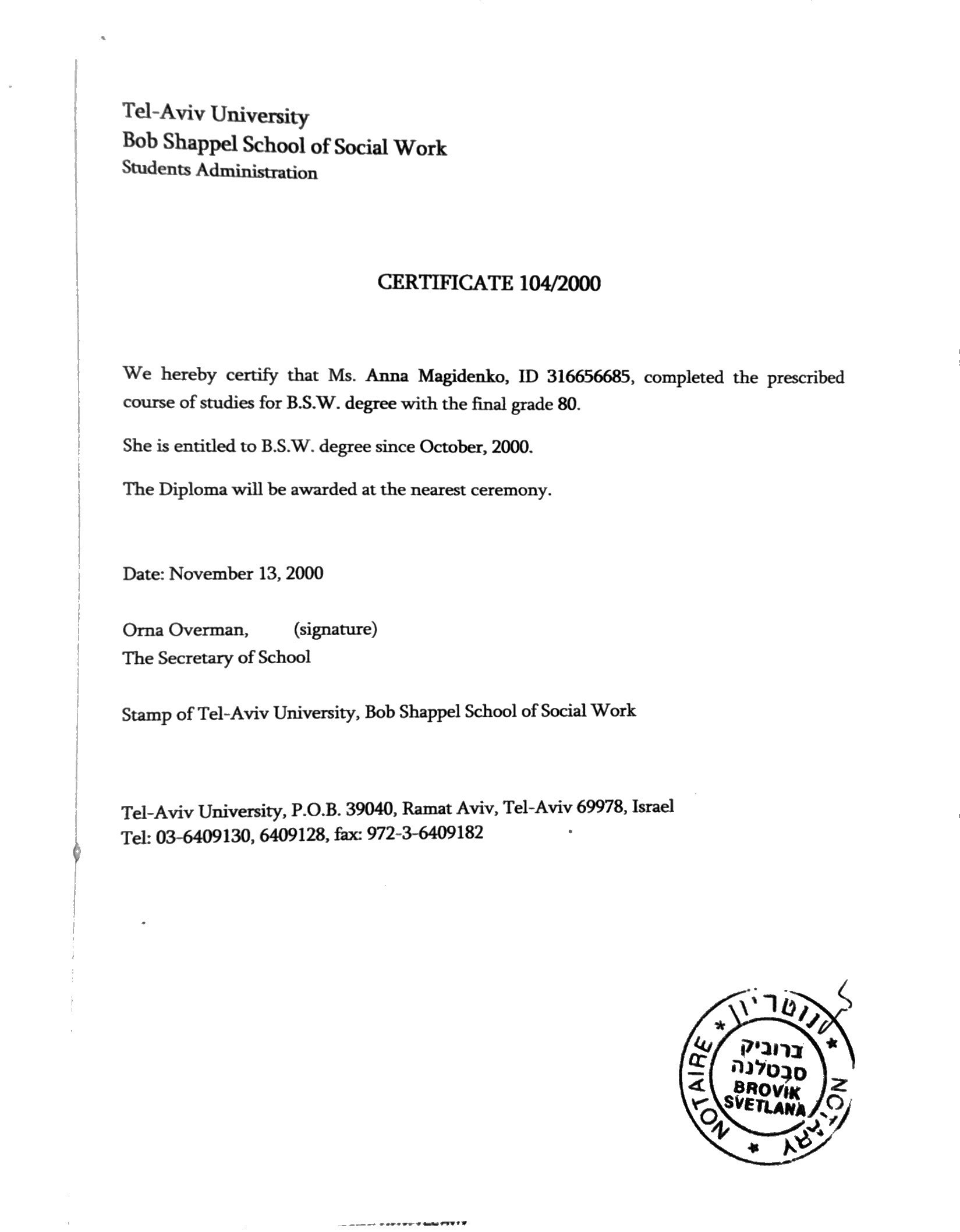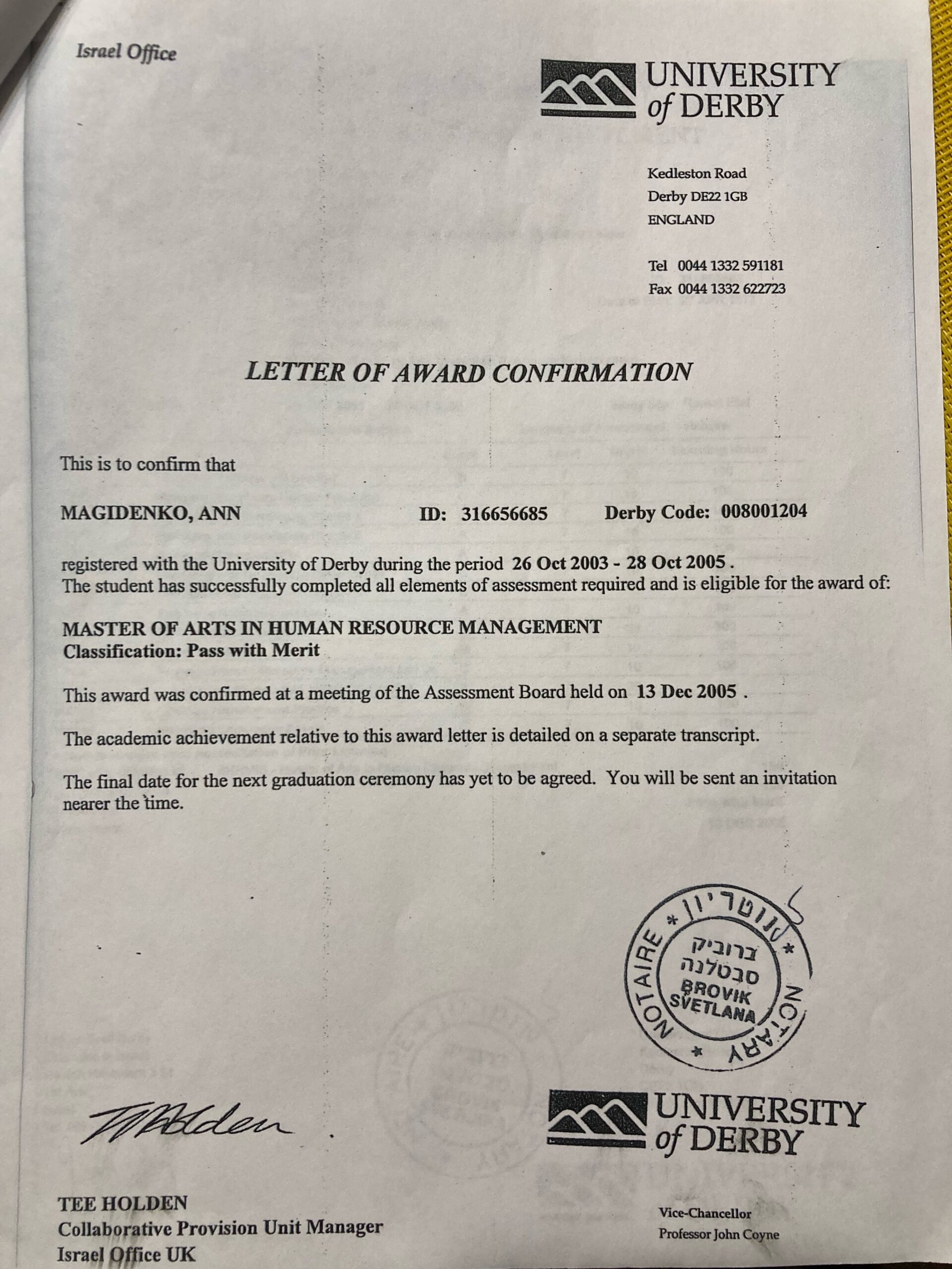 University of Derby (UK), 2005 - Bachelor of Social Work