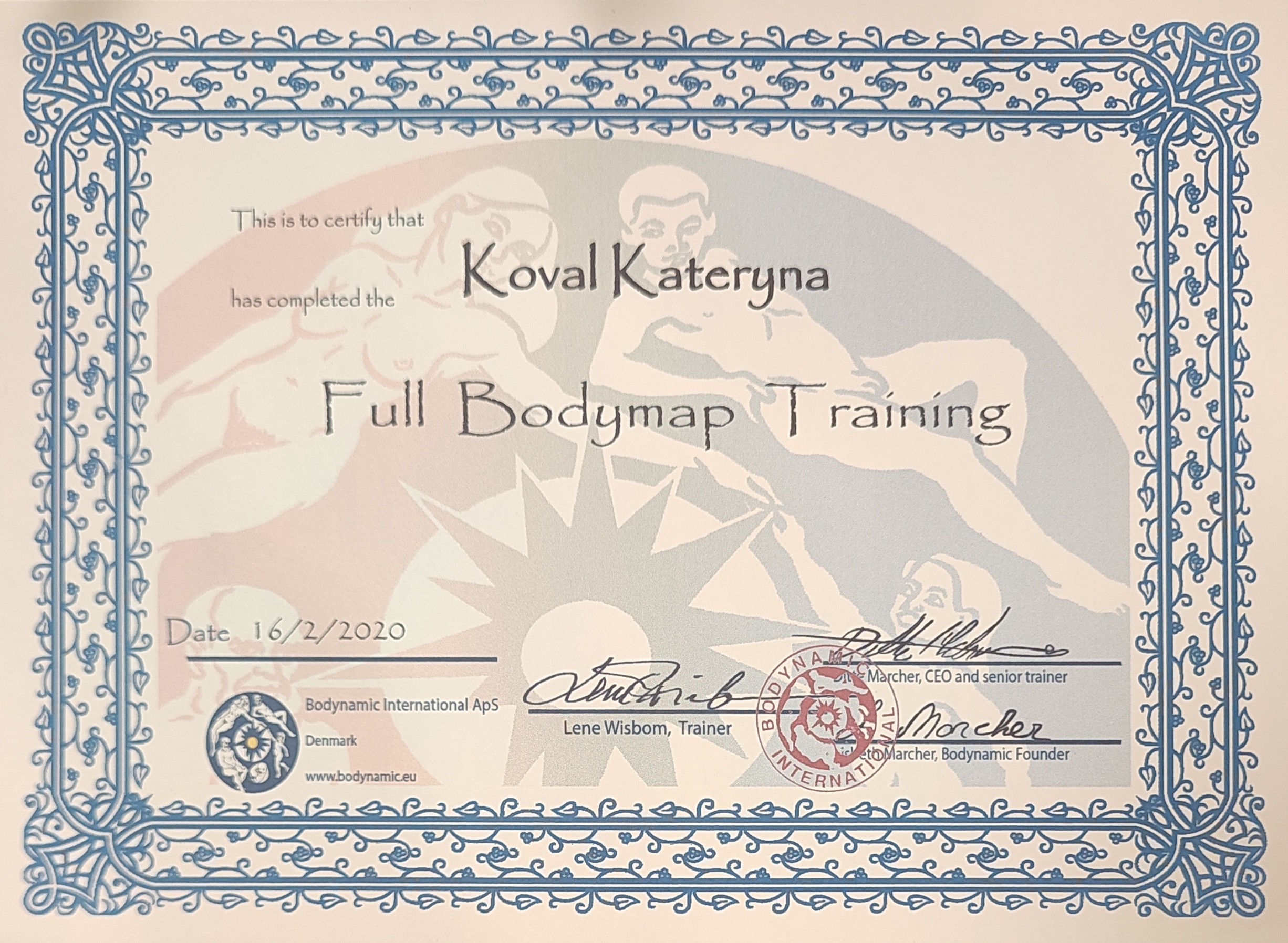 - Bodynamic Practitioner, Full bodymap taster (Bodynamic International), 2018